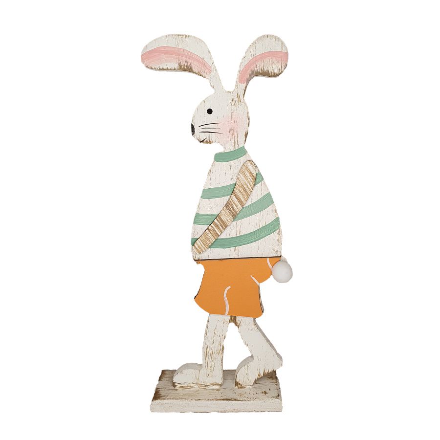 Coelho de MDF Rústico Roupa Listrada Verde - 01 unidade - Páscoa - Rizzo Embalagens