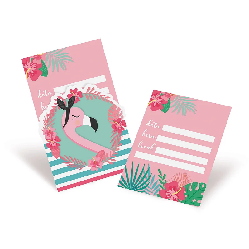 Convite - Festa Flamingo - 08 unidades - Cromus - Rizzo Festas