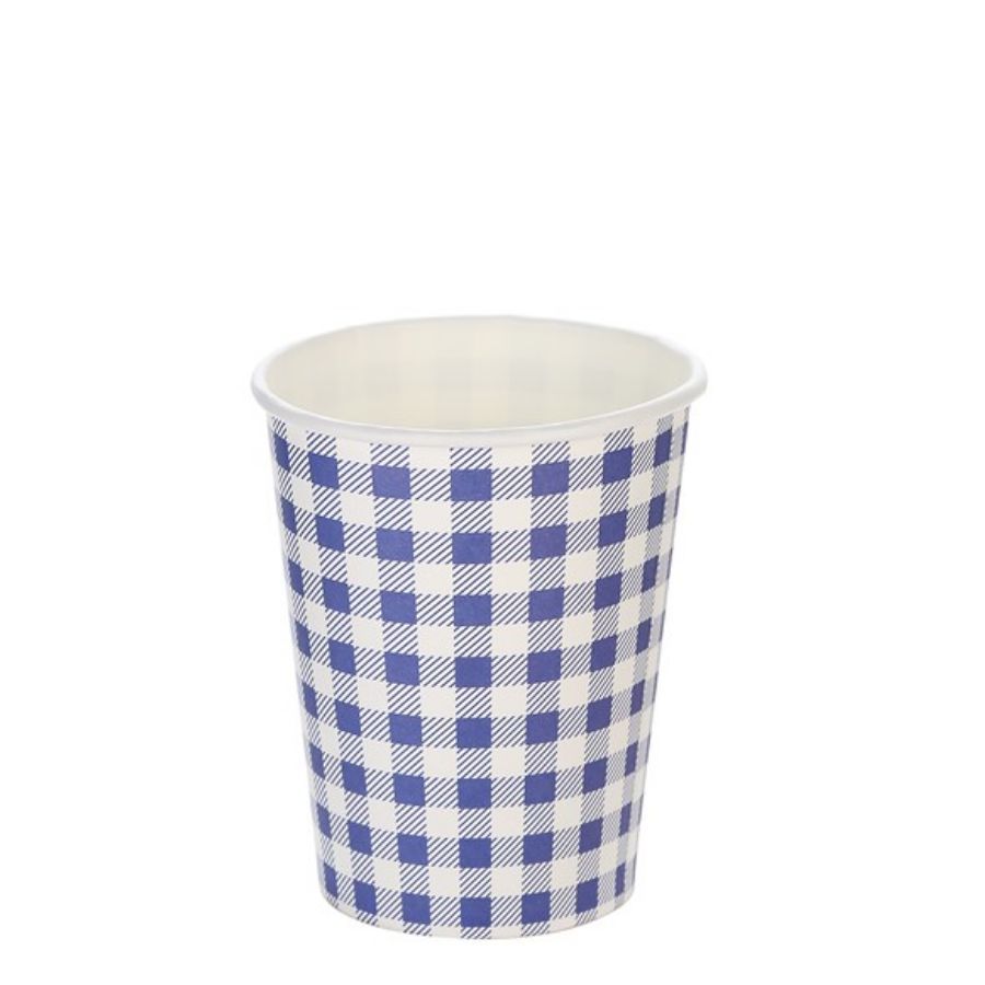 Copo papel Xadrez Junino Azul Biodegradável - 10 unidades - 270 ml - Rizzo