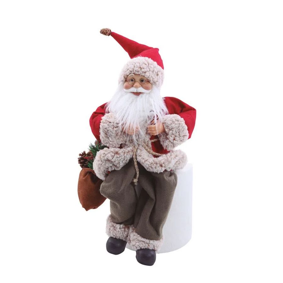 Papai Noel decorativo casaco vermelho, sentado em um apoio, medindo 47 cm.