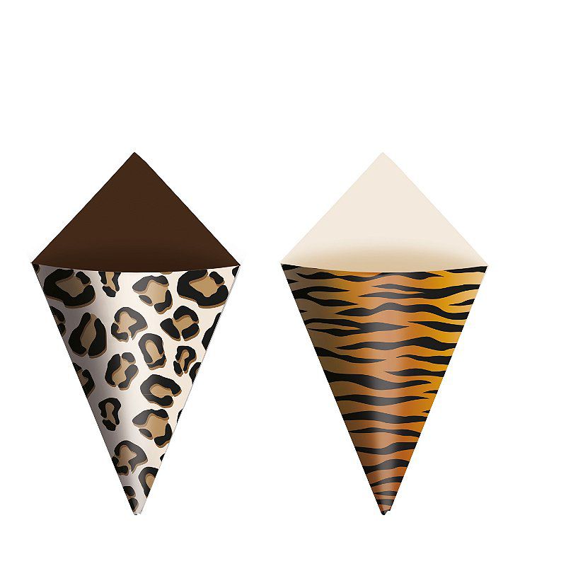 O Mini Cone Festa Safari é uma graça para vc presentear seus convidados. Nela vc pode colocar balinhas especiais, além de ser uma linda decoração para sua mesa de lembrancinhas.