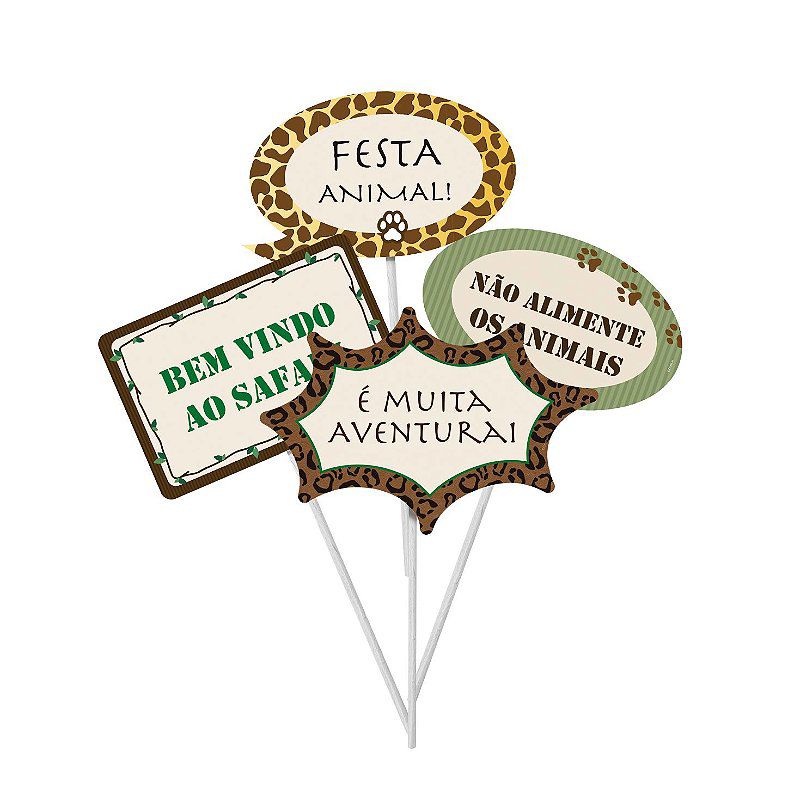 As Plaquinhas divertidas da Festa Safari são lindas, cores vibrantes que combinam com sua festa, excelente para a fotos mais que especiais.