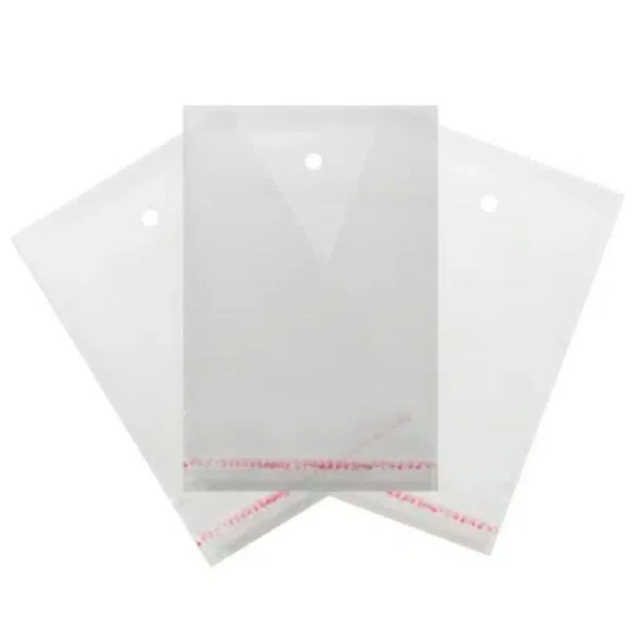 Um pacote contendo 100 unidades de saco adesivado com furo