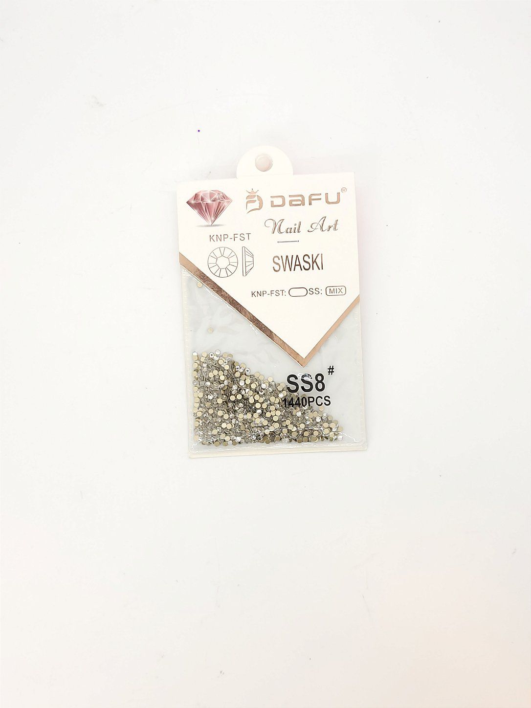 Uma cartela de Strass com formato de diamante, na cor Dourado/Nacarado SS8 com 1440 peças com as dimensôes de: 7,9cm x 13,6cm