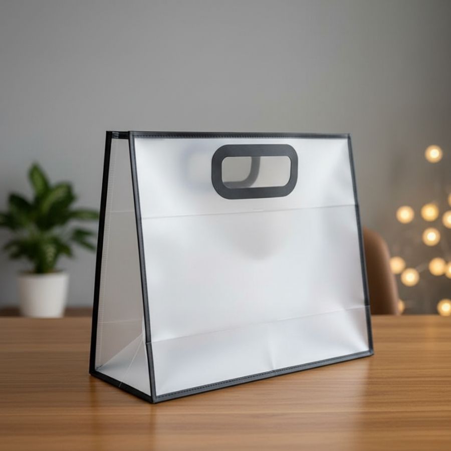 A Sacola Transparente Fosca PVC Alça Plana Preto - 22x26x10cm é perfeita para embalagens de presentes, lembrancinhas e produtos artesanais, unindo funcionalidade e estilo. Confeccionada em PVC fosco resistente, permite visualizar discretamente o conteúdo, valorizando os itens internos. A alça plana preta oferece conforto no transporte e confere um acabamento sofisticado à apresentação.