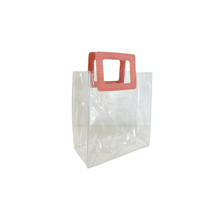 Sacola Quadrada Transparente de Plástico com alça quadrada de couro