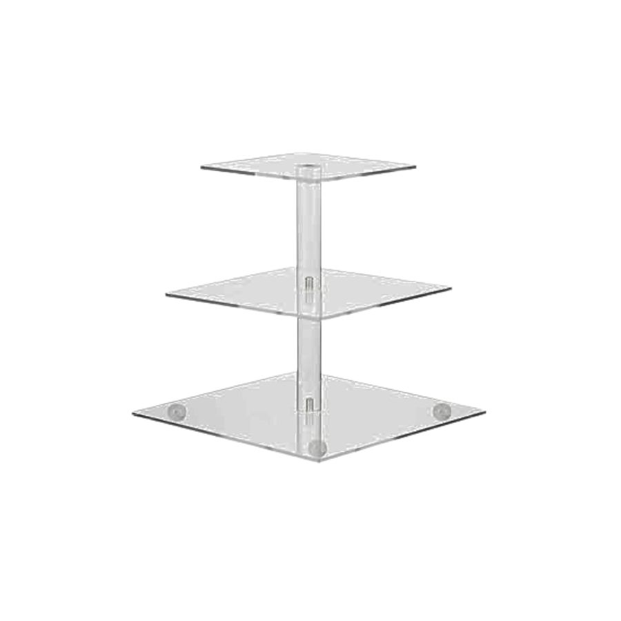 Boleira quadrada de acrílico com 3 camadas e iluminação LED. Ideal para doces e festas sofisticadas, combina praticidade com um toque moderno.