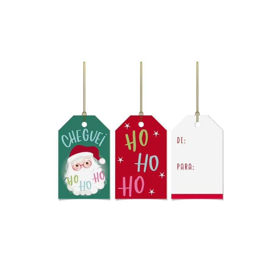 Tags de Natal - Cheguei HoHoHo - 8x5cm são o toque final perfeito para presentes, lembrancinhas e embalagens natalinas. Com a mensagem divertida “Cheguei HoHoHo” e tamanho ideal de 8x5cm, essas tags transformam qualquer presente ou docinho em algo especial e memorável, agregando charme e personalidade à sua decoração de Natal.