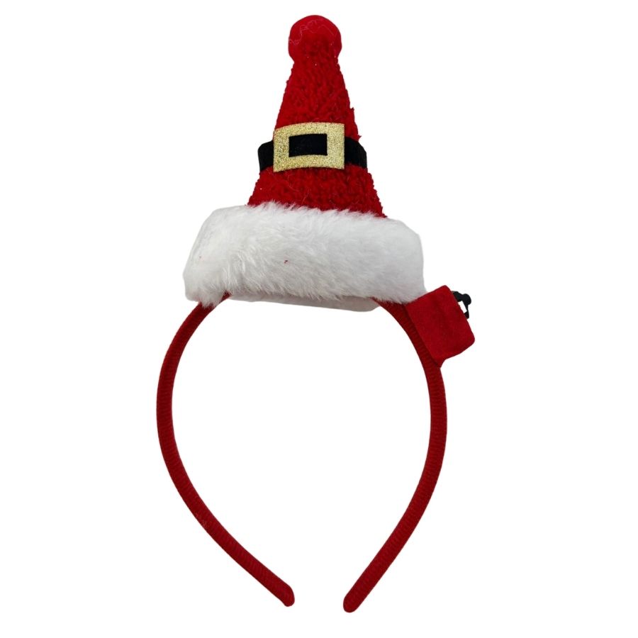 A Tiara Chapéu do Papai Noel com LED - 23,5x12,5x1,5cm é o acessório perfeito para entrar no clima natalino com muito estilo e diversão. Com design de mini chapéu do Papai Noel, ela conta com luzes de LED que tornam o visual ainda mais alegre e festivo, ideal para usar em festas, ceias de Natal, confraternizações e até em ensaios fotográficos. Leve e confortável, pode ser usada por adultos e crianças.