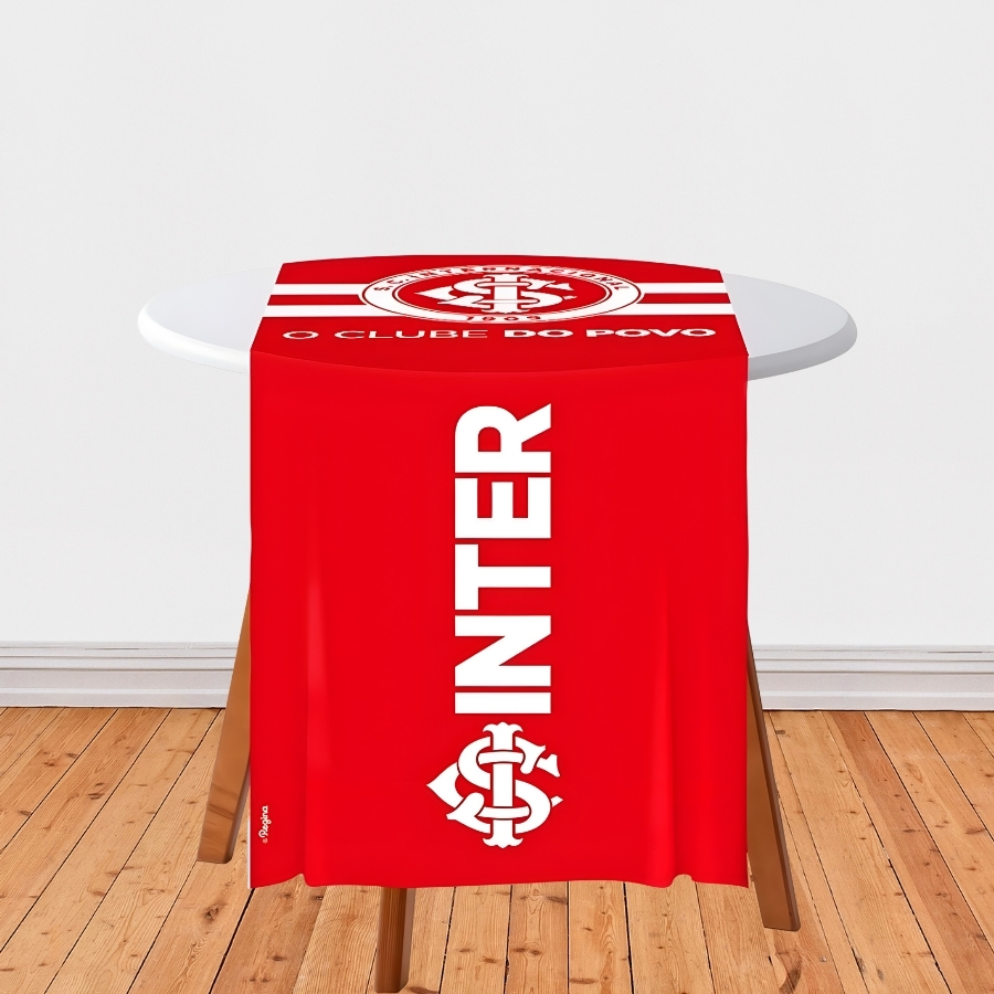Trilho de mesa com tema Internacional, dimensões 40x200cm. Leve, resistente e fácil de posicionar, ideal para festas, eventos e comemorações de torcedores, proporcionando praticidade e decoração temática de qualidade.