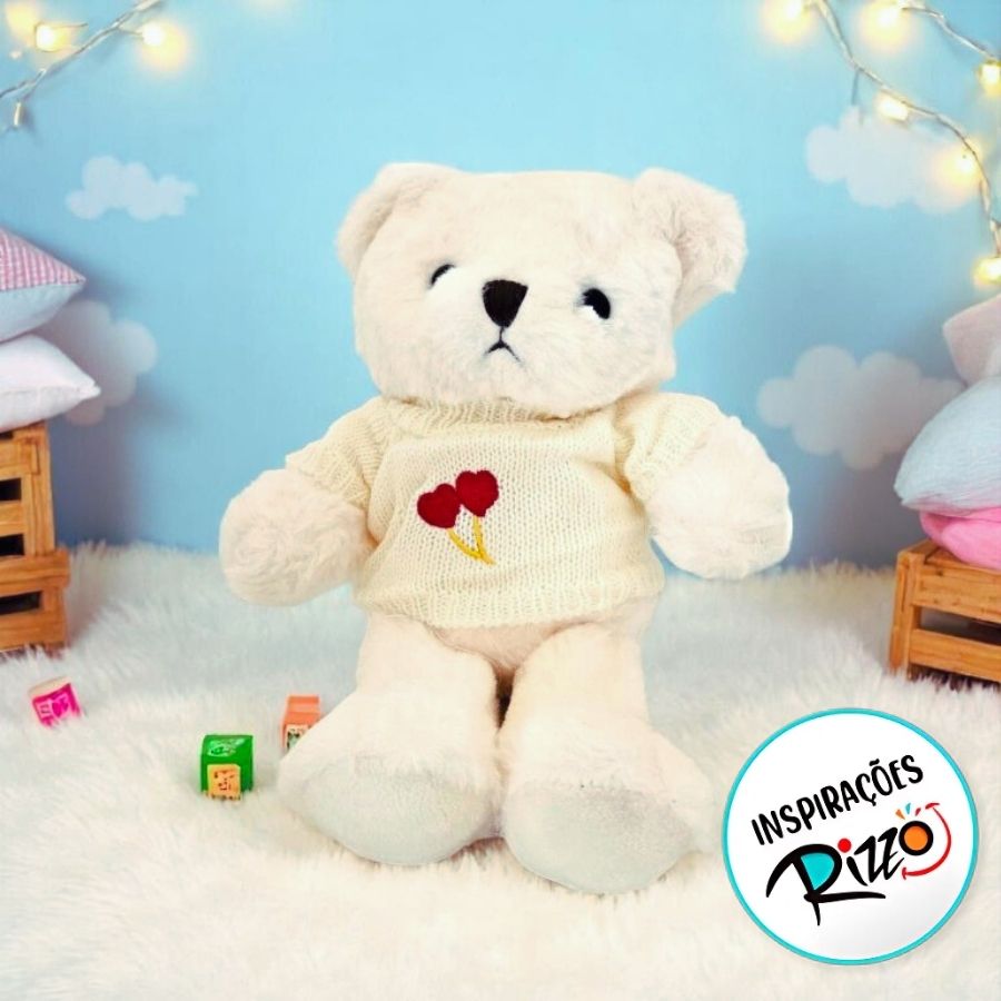 O Urso de Pelúcia com Suéter Off White - Branco - 29cm é fofo, macio e elegante. Ideal para presentear com delicadeza ou decorar com um toque de ternura.