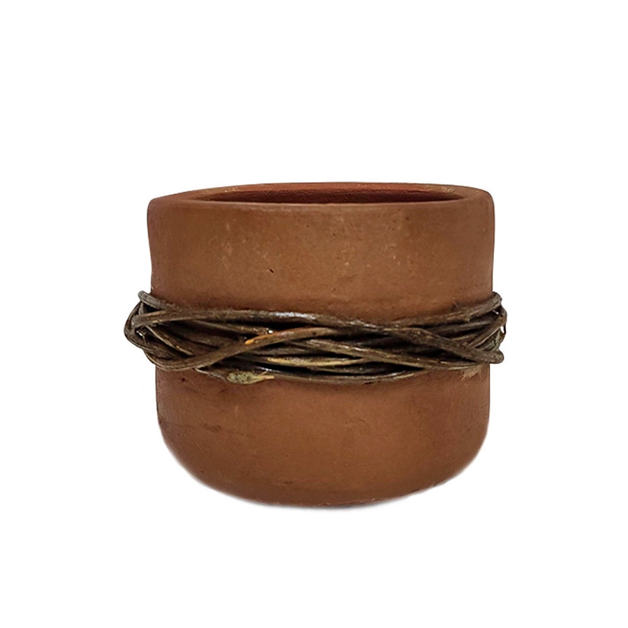 Vaso de cerâmica com cipo artificial contornando o vaso